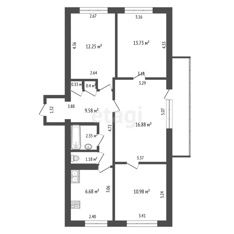 Есть застекленная лоджия, с/у раздельный, проведена телефонная линия.