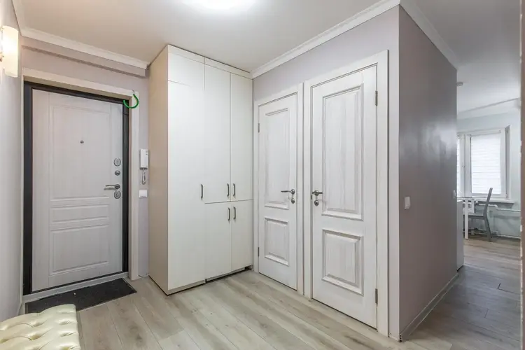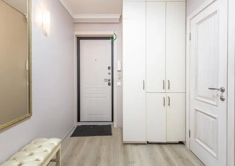 Зона хранения в виде встроенного шкафа в прихожей и на лоджии.