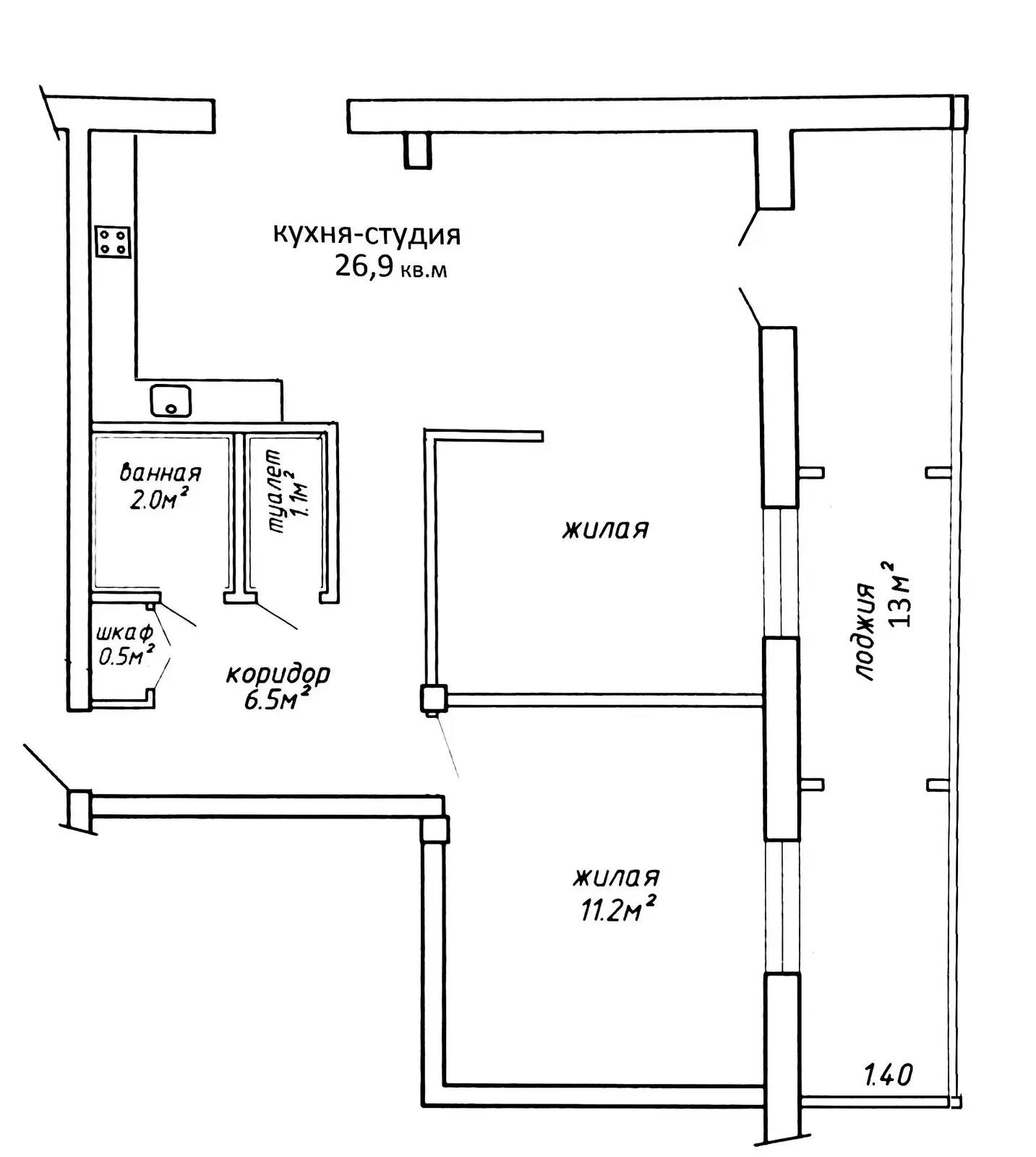 Рациональная планировка с большой кухней.