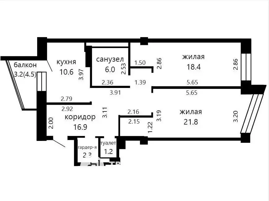 Общая площадь - 77.2 кв метра,