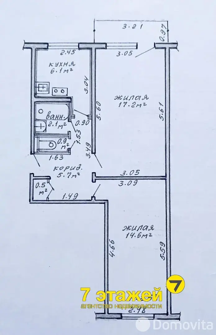 Общая площадь квартиры 47,1 кв.м., жилая площадь 31,8 кв.м. две просторные комнаты 17,2 кв.м. и 14,6 кв.м., кухня 6,1 кв.м, застекленный балкон.