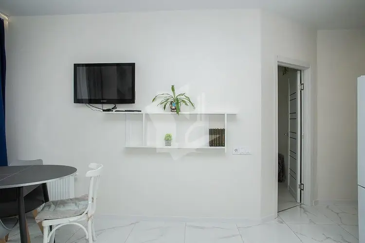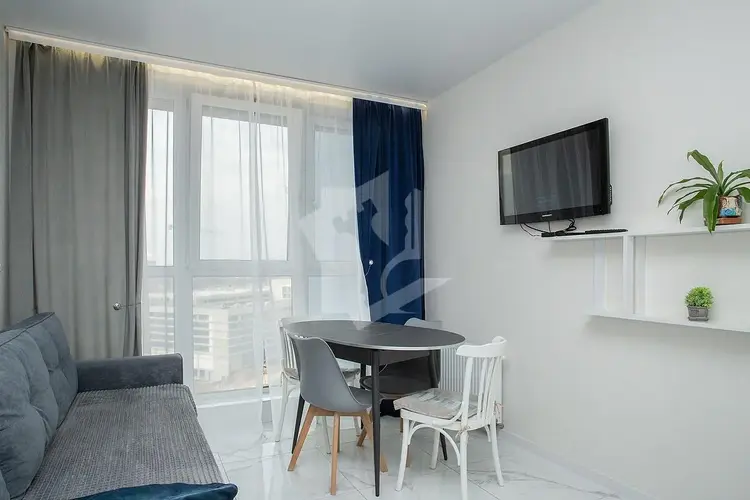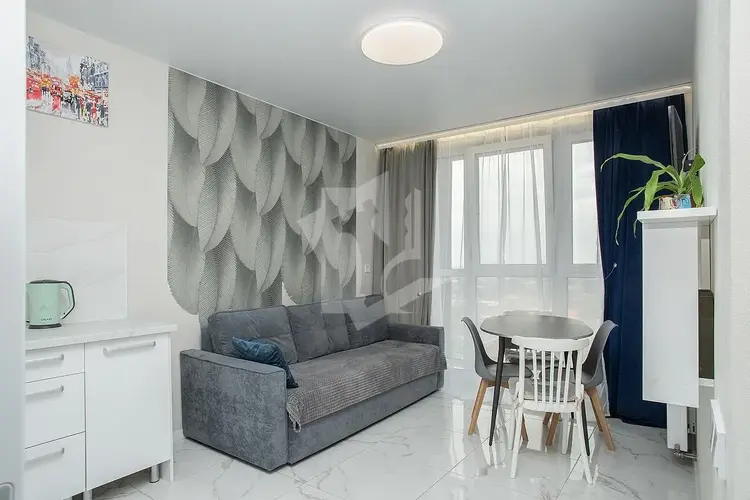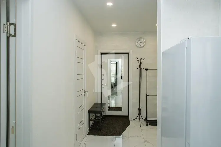 В квартире — большая гардеробная с зеркальными дверями-купе, полы утеплены по всей площади, зимой температура держится на уровне 26-28 °C.