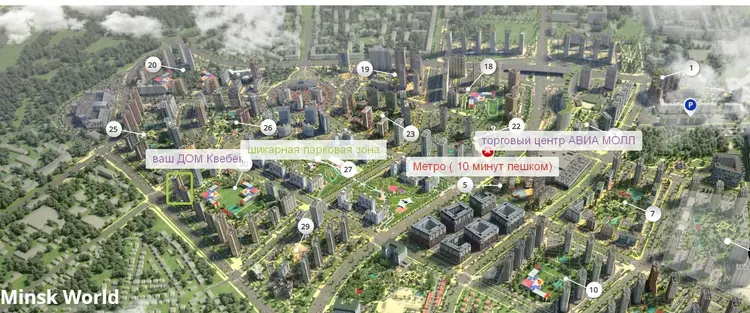 В Minsk World возводится Международный финансовый центр, символ деловой энергии современной Беларуси, а также крупнейший в стране торгово-развлекательный комплекс «Avia Mall».