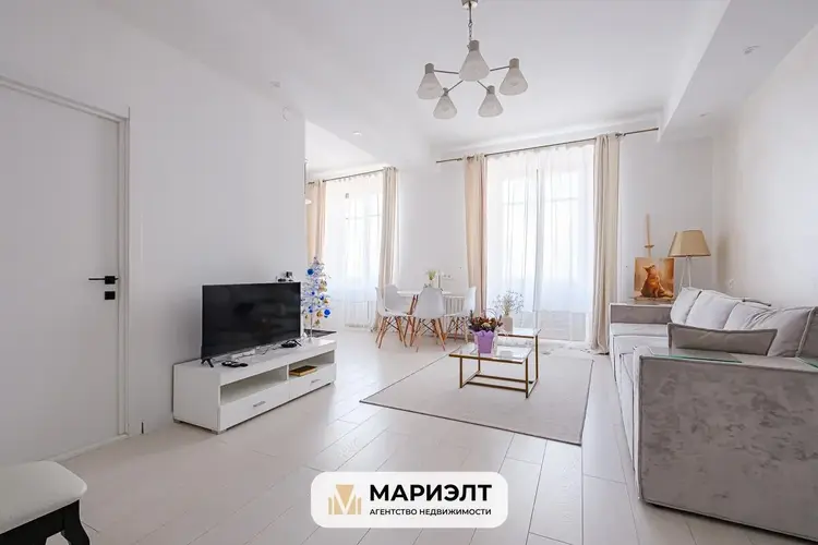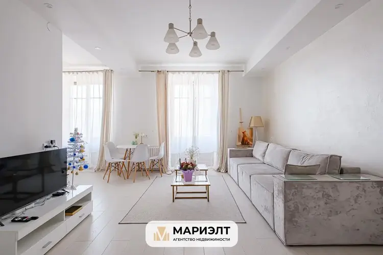 Продается элитная 2-комнатная квартира с премиум-ремонтом в сердце Минска — ул. Ленинградская, 1. Часть легендарного комплекса «Ворота Минска»: кирпичный дом после капремонта, 4 этаж, потолки 3,07 м, панорамный вид на исторический центр, просторный балкон и согласованная перепланировка.