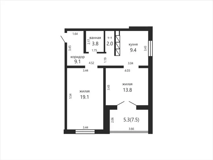 • Грамотная планировка: Полноценные две комнаты (19,1 м² и 13,8 м²) и светлая кухня (9,4 м²).