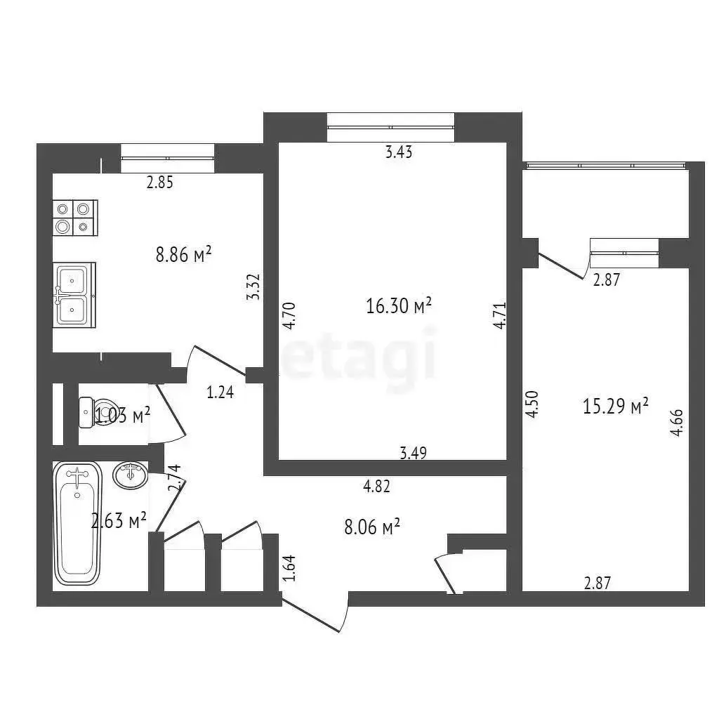 - комнаты 16.3 м2 и 13.29 с выходом на лоджию