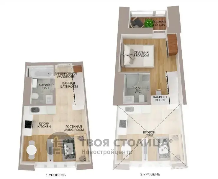 Двухуровневая квартира свободной планировки.