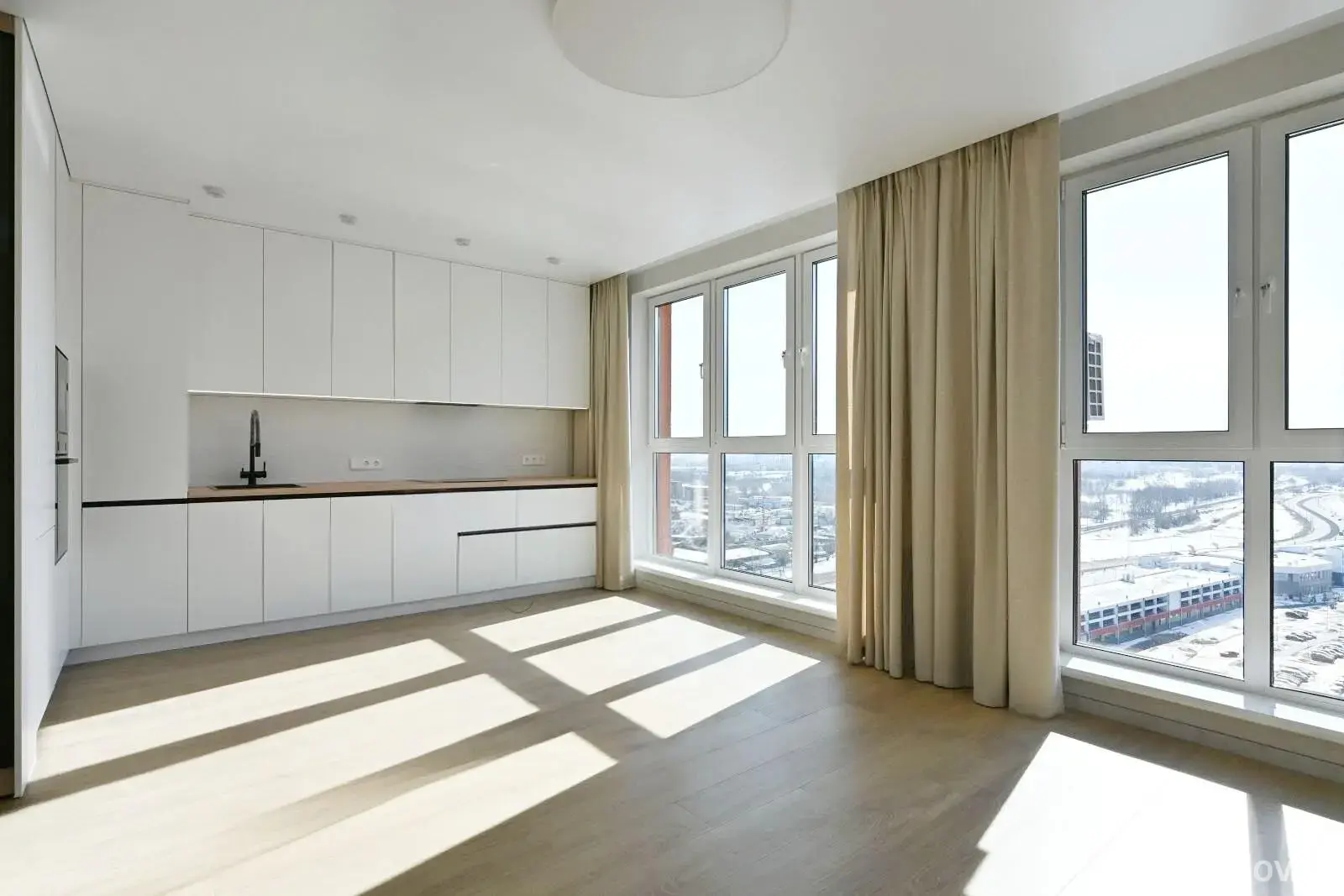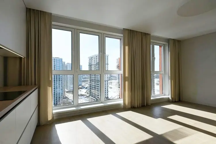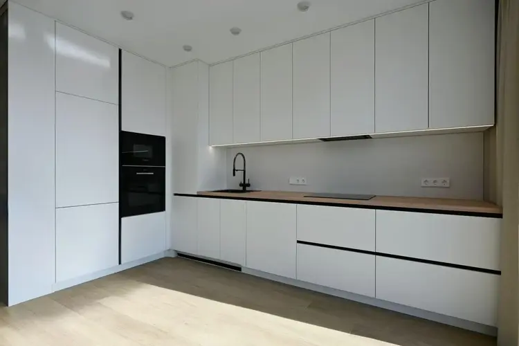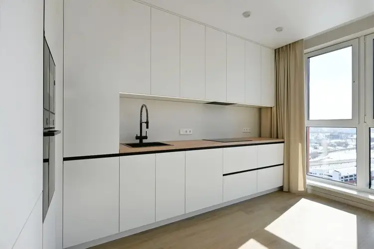 База готова: На кухне вас ждет техника Bosh. Мебель будет поставлена чуть позже (можно обсудить), а пока вы видите идеально чистый холст для ваших дизайнерских решений.