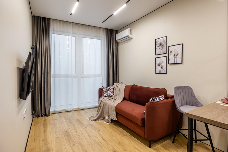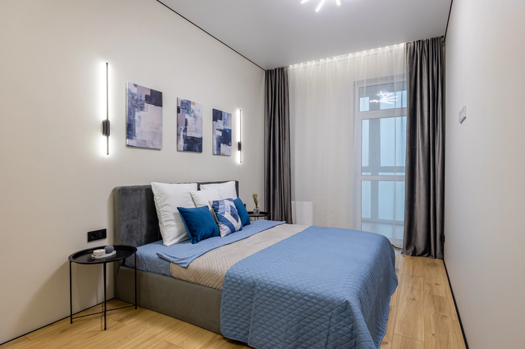 Большая гардеробная, полноценное рабочее место на лоджии и кровать 180×200, диван 160×200 — удобство без компромиссов.