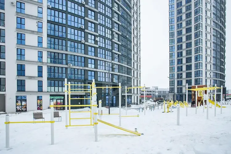 В этом районе есть: - Два современных детских сада с бассейнами - Музыкальная школа - Поликлиника - Общественно-образовательный центр - Торгово-развлекательный центр (Avia Mall) - Баскетбольный стадион и теннисный корт - Территории для воркаута и безопасные детские площадки с мягким гудроновым покрытием Созданные уютные дворики с детскими и спортивными площадками, зонами отдыха и велопарковками делают жизнь в этом комплексе поистине комфортной и насыщенной.