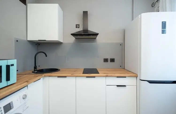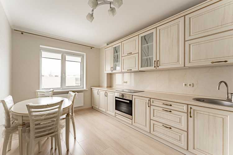 Отделка: На полу – прочный и красивый ламинат, а в кухне и санузле – практичная и стильная плитка.