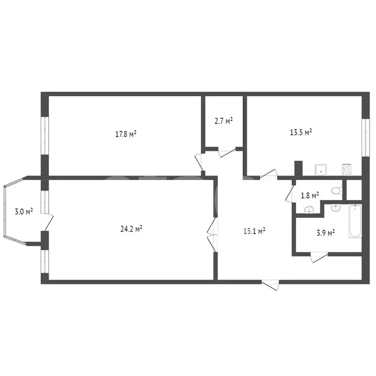 * Комната 1: 22.6 кв.м. с выходом на балкон.