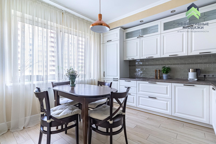 - Кухня премиум класса с фурнитурой (+доводчики) Blum укомплектована всей необходимой техникой Bosch (варочная поверхность, духовой шкаф, посудомоечная машина, встроенный холодильник) – место для семейных ужинов и дружеских посиделок.