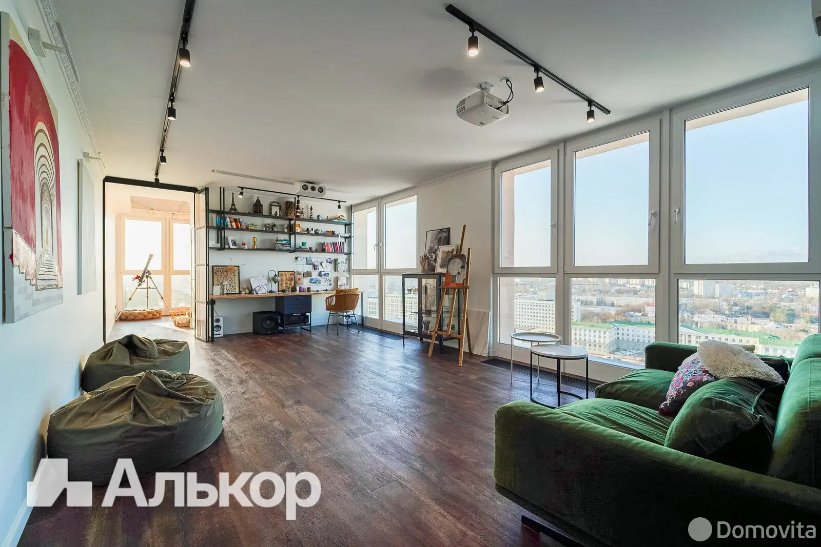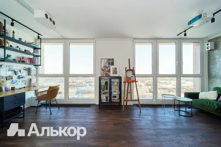 Данная квартира имеет лучшее расположение относительно других аналогичной площади с точки зрения вида и окон, а 24 этаж дает прекрасную возможность наблюдать красивую панораму Минска и зеленую зону парка.