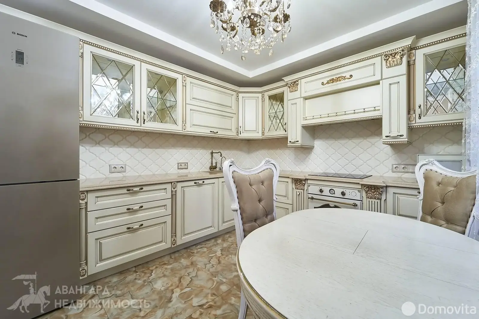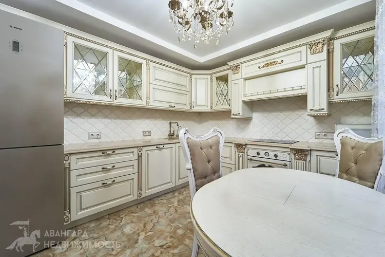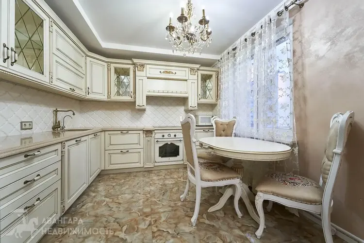 - Встроенная кухня с фурнитурой Blum (фасады кухни производства Италия), столешница из камня (производство Чехия)