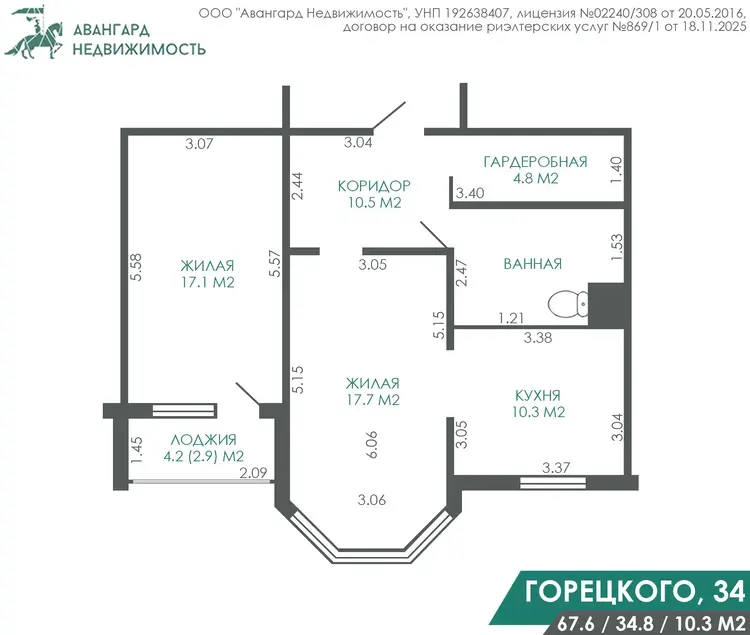- Общая площадь составляет 67,6/34,8/10,3 кв.м. Квартира расположена на 4 этаже 10-ти этажного панельного дома 2015 года постройки. Благоустроенная детская игровая площадка, Интеллигентные соседи. Есть место для хранения велосипедов.