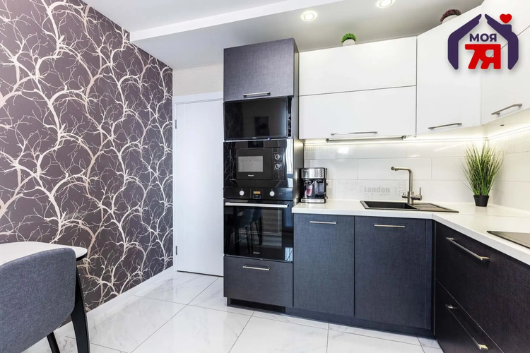 -На кухне есть встроенная техника; варочная панель, вытяжка, посудомоечная машина, микроволновка, телевизор, установлены две подсветки с датчиком «взмах руки». Пол: итальянская плитка с подогревом.