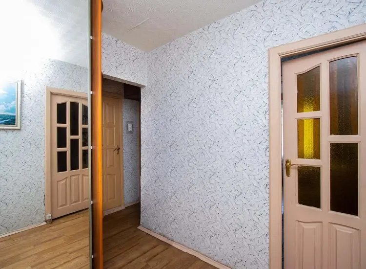 Квартира свободна. В оконных проемах установлены стеклопакеты ПВХ. На полу линолеум. Встроенная кухня. В коридоре шкаф-купе. С мебелью. В санузле плитка, установлены приборы учета воды. В квартире установлена входная двойная дверь. В тамбуре входная металлическая дверь.