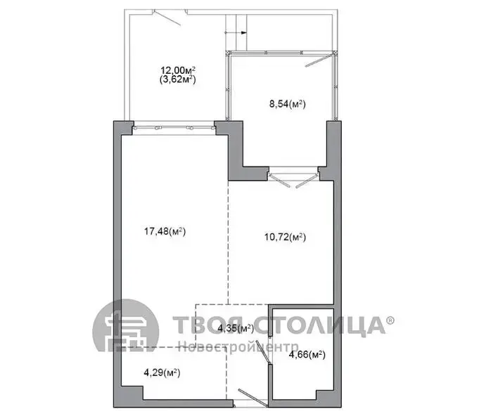 Квартира на момент ввода является однокомнатной с возможностью разделения на комнаты по индивидуальному проекту будущего собственника.
