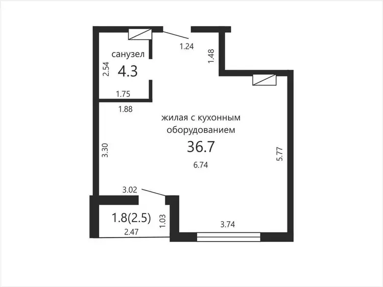 - Жилая: 35,7 м²