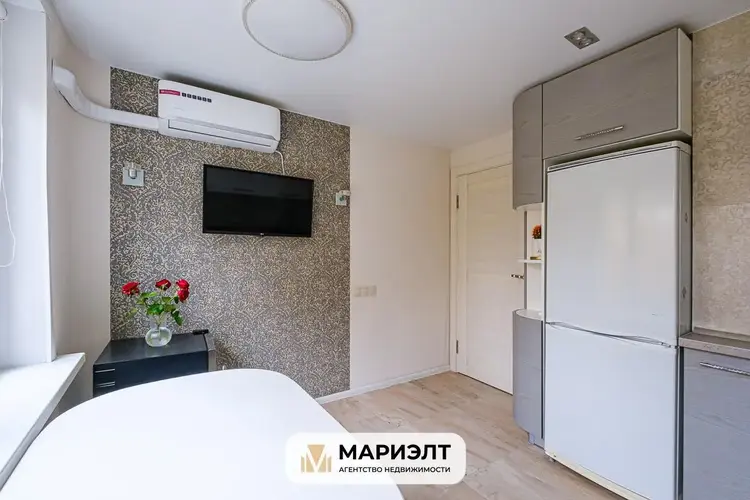 Теплый пол в зоне плитки, на кухне установлен кондиционер.