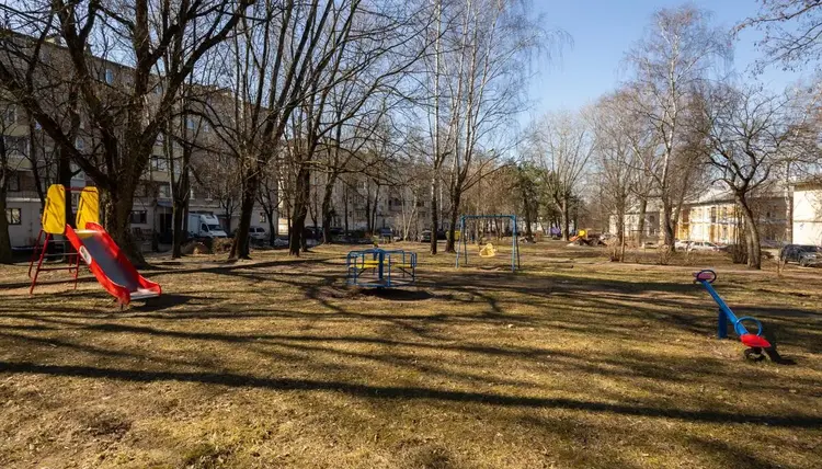 Дом расположен в зелёной зоне — тихо, спокойно и приятно для прогулок. Во дворе оборудованы детские площадки.