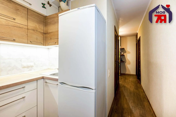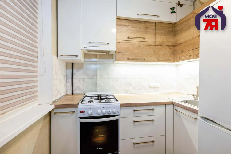 - Кухня выполнена в современном стиле с акцентом на удобство. Светлые фасады визуально расширяют помещение, встроенная мебель смотрится аккуратно и цельно. Рабочая зона защищена керамической плиткой, напольное покрытие устойчиво к нагрузкам и влаге. Эргономика продумана - здесь удобно готовить и проводить время без ощущения тесноты.