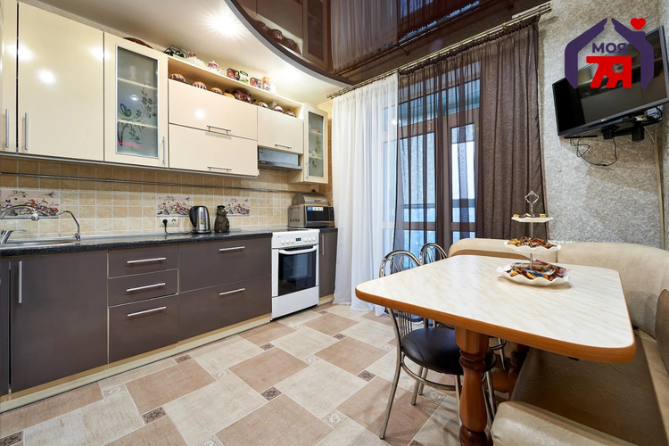 -На кухне установлен стильный, продуманный гарнитур, и пространство действительно позволяет готовить с комфортом..