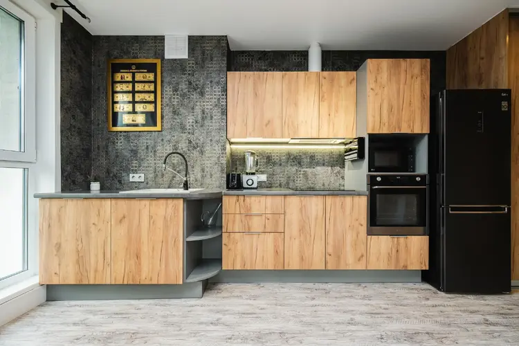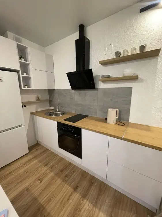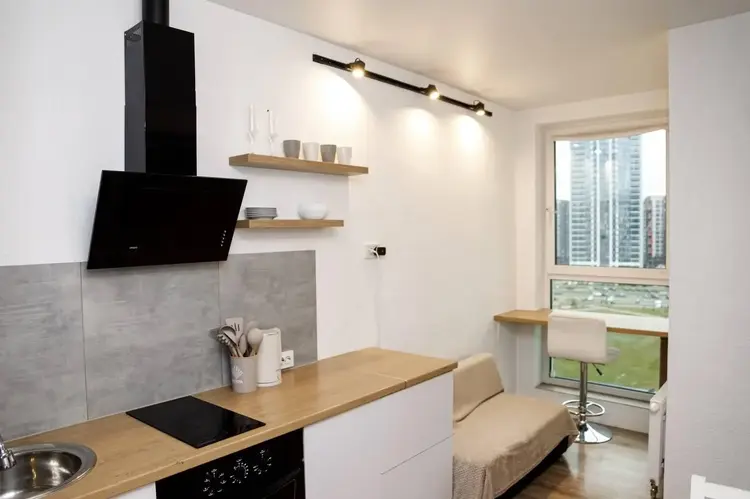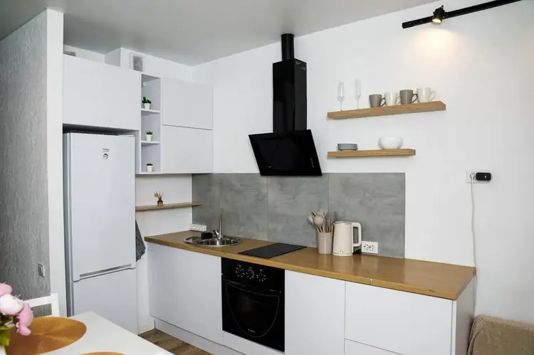 Для приятной готовки в кухне установлена индукционная плита Samsung, духовой шкаф LG, встроенная вытяжка Grand.