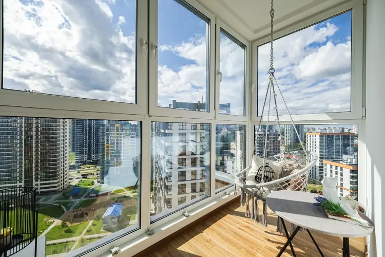 Отдельное внимание заслуживает лоджия. Подвесные кресла и теплый пол создают особый уют, панорамные окна позволяют любоваться прекрасными закатами и великолепным ночным городом.