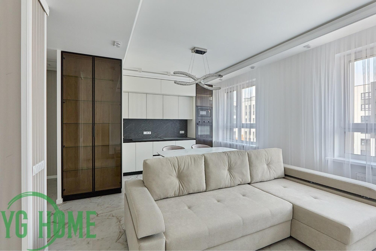 Квартира продается с машино-местом и подвальным помещением. Максимально удобная и практичная планировка: прихожая, кухня-гостиная, спальня, два санузла, лоджия. - вся мебель изготовлена на заказ и из МДФ;-потолки гипсокартон (подсветка по периметру потолков, и зонирование комнат светом) - продуманная разводка электрики с розетками и включателями света по зонам, переходными выключателями;-просторные шкафы, много мест для хранения;-кухня с механизмами Blum, столешница изготовлена из искусственного камня;-встроенная техника премиальных брендов- варочная панель, вытяжка, духовой шкаф, печь СВЧ, посудомоечная машина, холодильник фирмы Bosch и Самсунг. - гостиная зонирована на зону ТВ и отдыха и обеденную зону с кухней;- два санузла ! Установлена стиральная машина.