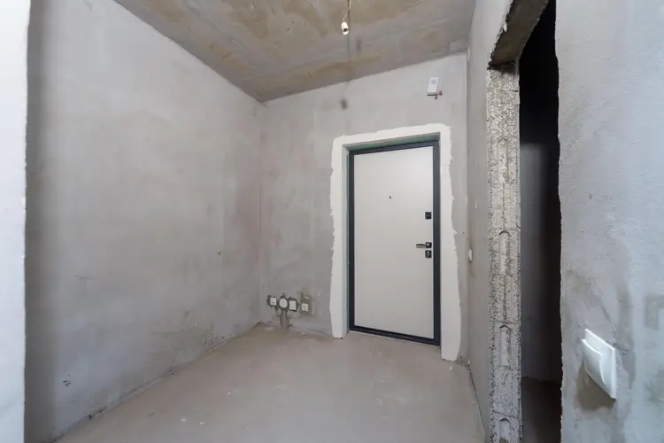 Квартира без чистовой отделки, при этом выполнена стяжка пола и штукатурка стен, установлены оконные блоки из ПВХ-профиля с заполнением двухкамерным стеклопакетом. Разведена электрика с установкой розеток и выключателей, подведено оптоволокно.