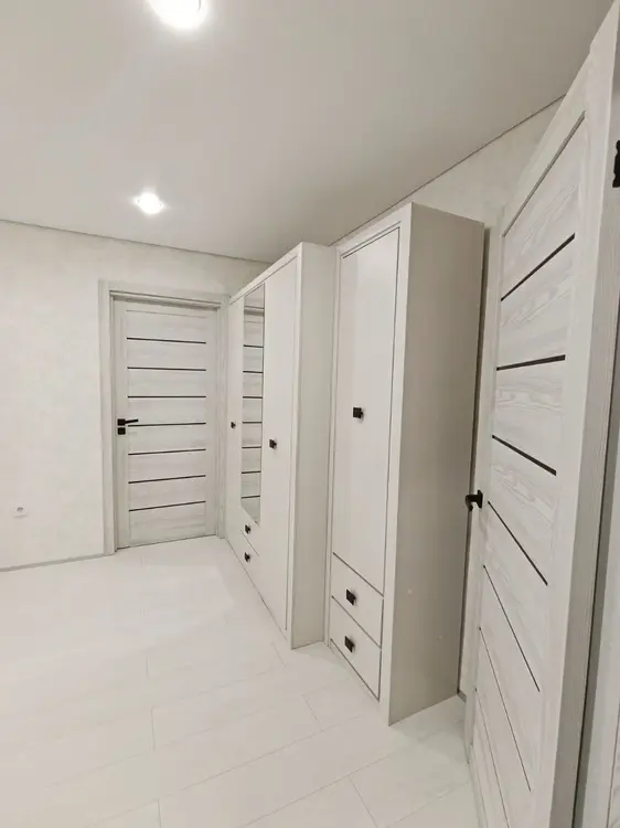 4. Окна ПВХ с ролл-шторами, межкомнатные двери Амати, входная металлическая дверь Юркас с хорошей шумоизоляцией. Обои влагостойкие, натяжные потолки, в комнатах с теневым профилем.