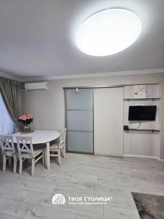 Просторная 2-комнатная квартира в шаговой доступности от метро ПушкинскаяПредлагаем к продаже двухкомнатную квартиру с качественным современным ремонтом в обновленном доме (капитальный ремонт проведен в 2023 году). Квартира находится всего в 10 минутах неспешной ходьбы от станции метро «Пушкинская», что обеспечивает великолепную транспортную доступность до любой точки города.О квартире:· Современный ремонт.· Напольные покрытия: ламинат и плитка.· Ровные окрашенные потолки, стеклопакеты ПВХ.· Встроенная кухня с бытовой техникой, счетчик газа.· Установлен кондиционер.· В санузле — современная плитка и приборы учета воды.· Практичная планировка с гардеробной и шкафом-купе.· Металлическая входная дверь, домофон.· Подключен высокоскоростной интернет (оптоволокно).· Закрепленное подвальное помещение.О локации:Дом расположен в тихом зеленом дворе. В пешей доступности вся необходимая инфраструктура: детские сады, школы, гимназия, поликлиника, супермаркеты, рынок «Раковский Кирмаш», кинотеатр «Аврора» и торговые центры. Удобный выезд на МКАД.Идеальное сочетание уюта, комфорта и выгодного расположения!Прямая продажаПоможем выгодно продать вашу квартиру для покупки этой. Расширенные консультации по покупке, продаже и обмену вашей квартиры на этот объект можно получить в Центральном офисе «Твоя столица по адресу г. Минск, ул. Кирова, 8