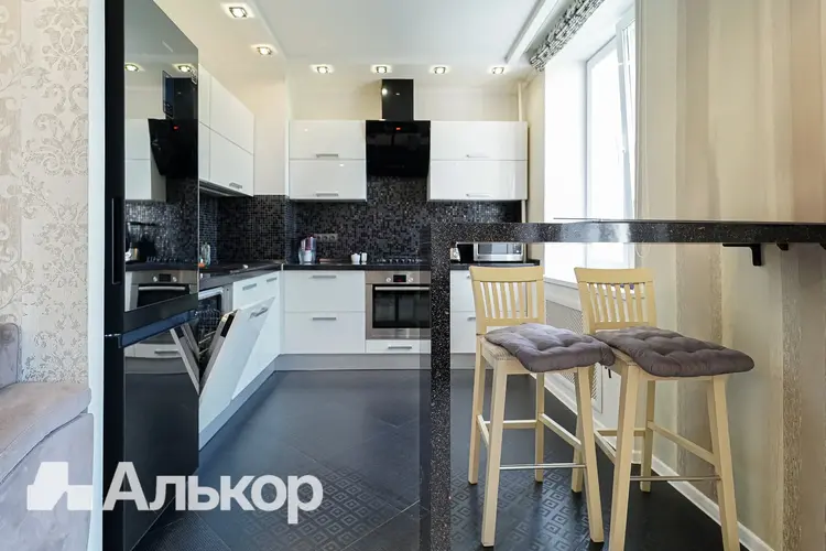 Очень просторная и с отличным стильным ремонтом 2/2 комнатная квартира с высокими (3 м.) потолками. Окна кухни и гостиной с балконом, выходят во двор. Окна спальни на ул. Первомайская. Трамваи не слышны, так как очень плотные стеклопакеты с очень широкими подоконниками.