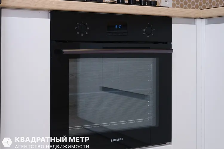 Окна –  стеклопакеты ПВХ с москитными сетками. Межкомнатные двери – шпон, входная – металлическая. Пол – ламинат 33 категории (Германия), обои (Италия), импортная плитка в сан.узле, натяжные потолки. В стоимость входит: встроенная  кухня с бытовой техникой (вытяжка Zorg, газовая панель Gefest, духовой шкаф Samsung), прихожая, шкаф на лоджии.