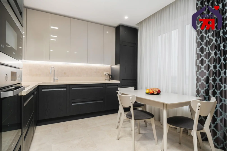 Свежий евроремонт выполнен в единой стилистике с использованием натуральных и долговечных материалов. Светлые оттенки подчеркивают объём помещений.