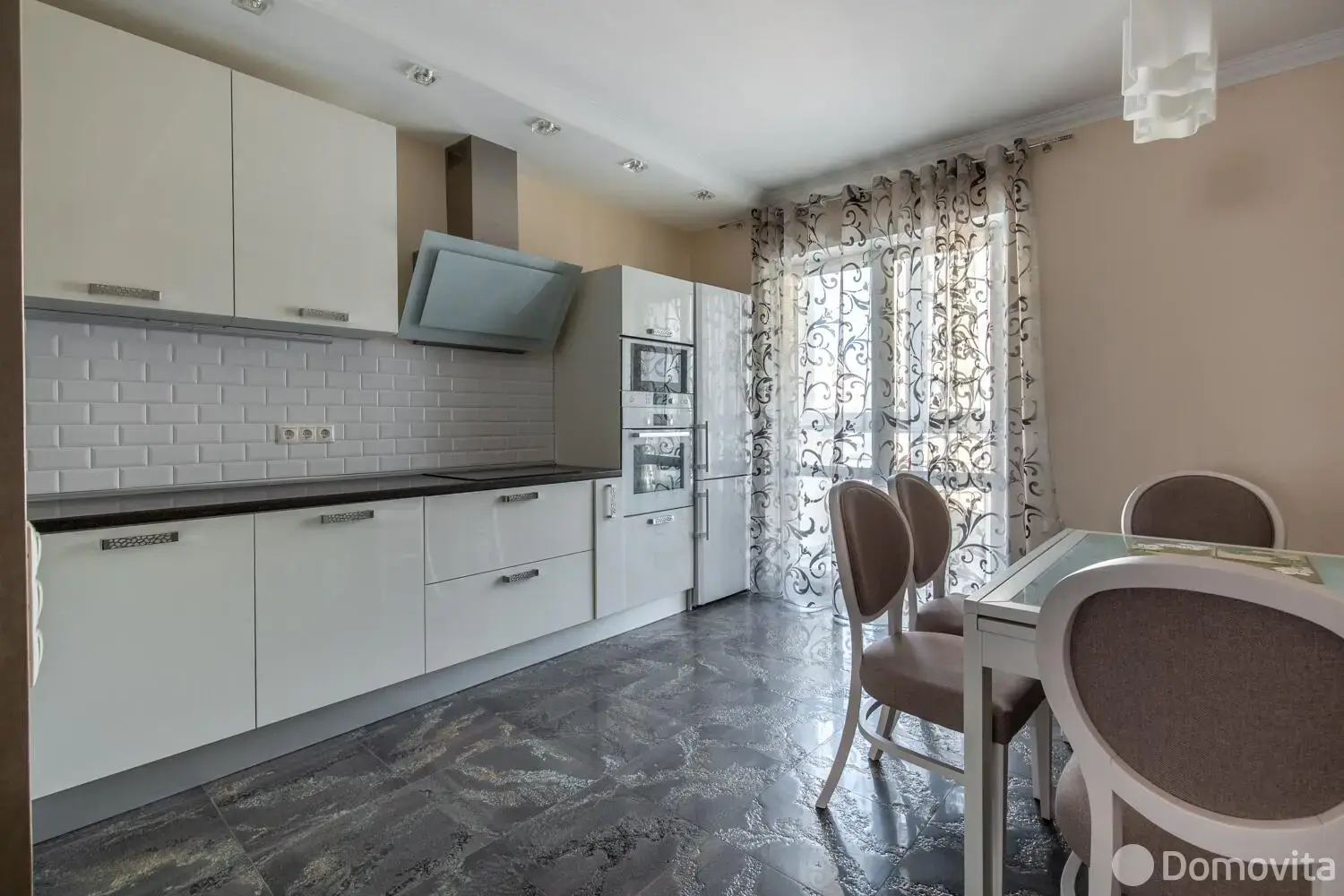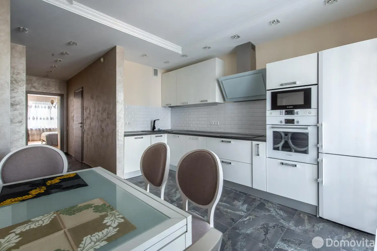 - Кухонная бытовая техника включает современную технику высшего класса: посудомоечную машину, индукционную варочную поверхность, духовку и микроволновую печь.