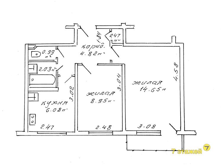 В Квартире 2-е изолированные комнаты: 14.65кв.м. и спальня 8.95кв.м. На кухне размером в 6,08м2 – установлена газовая плита и кухонный гарнитур; , стены оклеены обоями, фартук облицован плиткой. Санузел раздельный, на полу плитка, новая сантехника. Установлены новые счетчики на электричество/воду/газ.