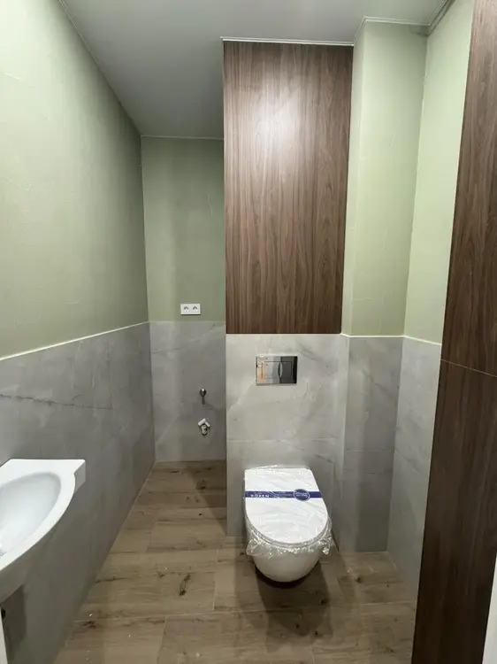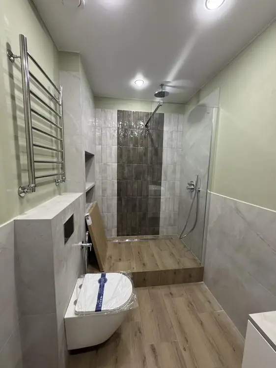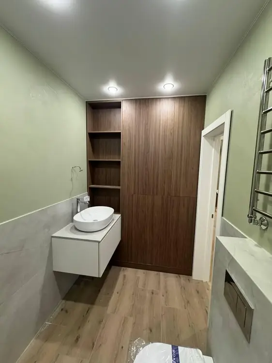 Стоимость квартиры обозначена с готовым ремонтом и мебелью. Квартира с шикарным ремонтом, для отделки использовались только качественные материалы. Полы в жилых комнатах и коридоре выполнены из кварц-винила, подвесные потолки из гипсокартона, стены отделаны декоративной штукатуркой «микроцементом», кухонная столешница из керамогранита.