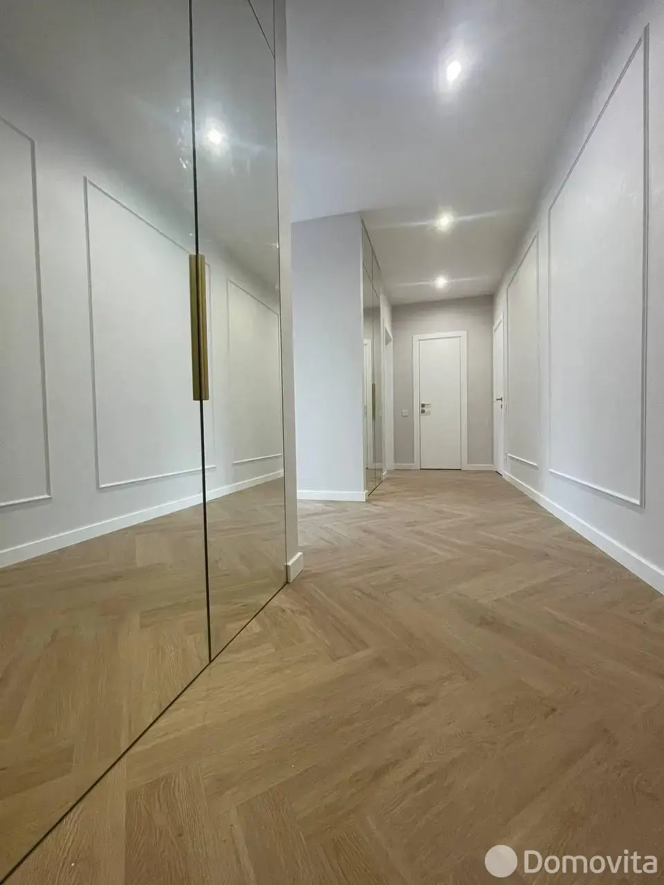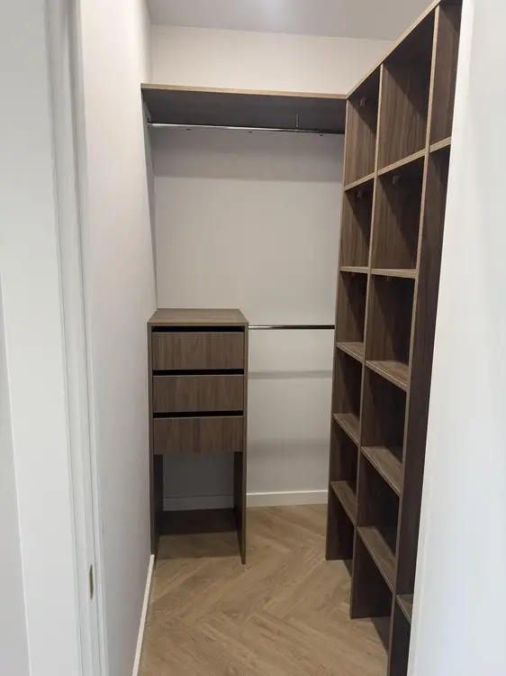 Пространство квартиры разделено на обширную кухню-гостиную с выходом на балкон, спальню с вместительным гардеробом, коридор со шкафами для хранения и 2 сан. узла.