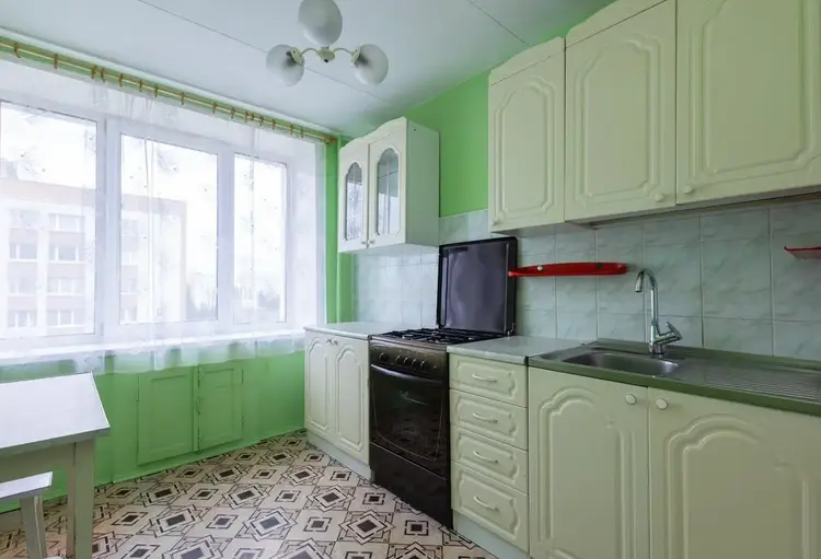 · Кухня 8 м2 — аккуратная, с гарнитуром, удобно перепланировать под себя, под окном размещена зона «холодного хранения»;