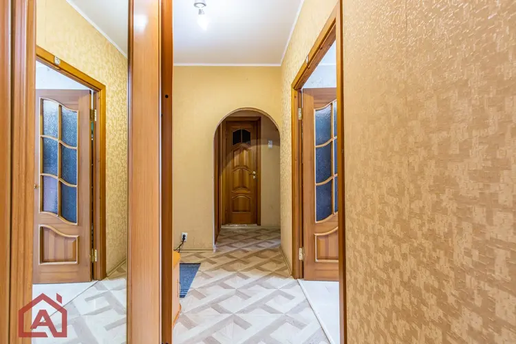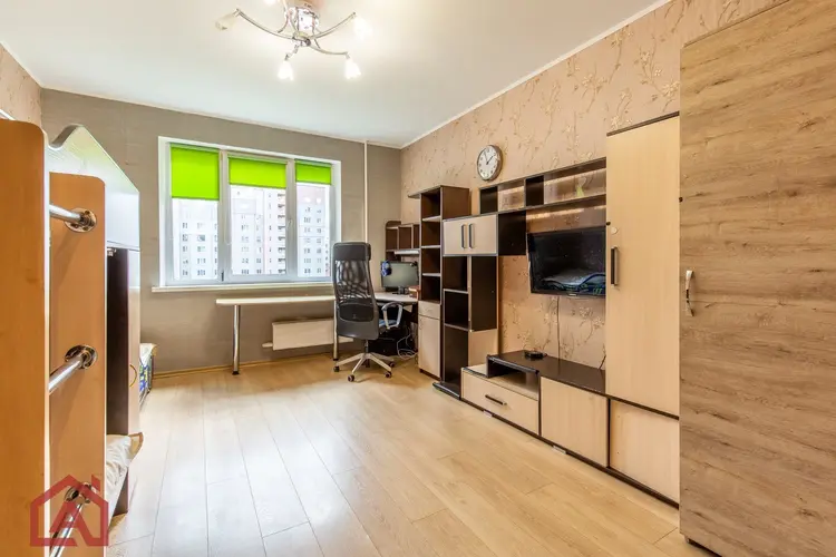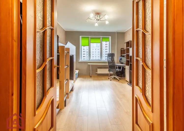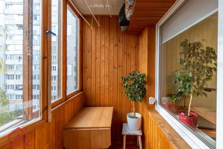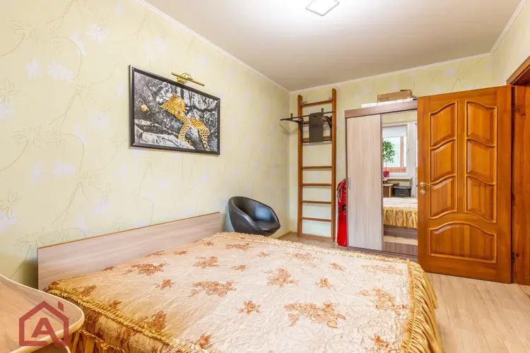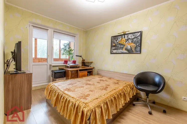 Комнаты достаточно просторные: 16,3м2 - удобной квадратной формы и уютной спальной комнаты - 13,1м2 с застекленной лоджией и спортивным инвентарем впридачу. На окнах стеклопакеты, на полу ламинат.