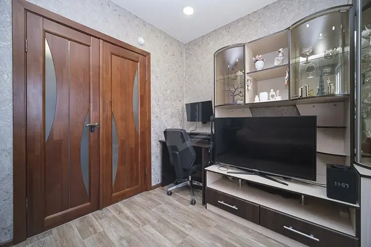 - Свежий ремонт: линолеум премиум-класса, стеклопакеты. Двери выполнены из массива сосны.