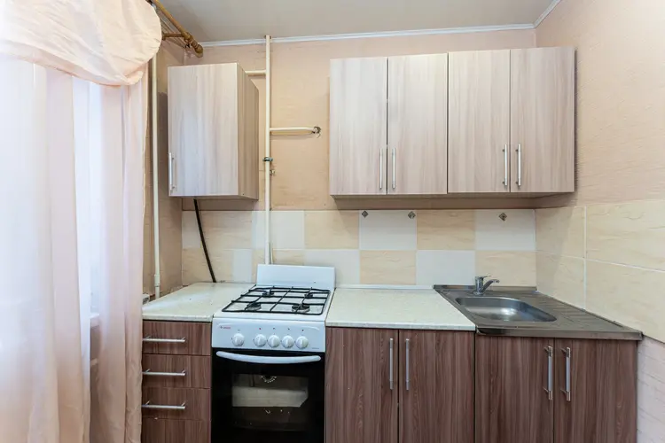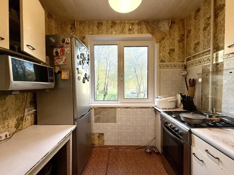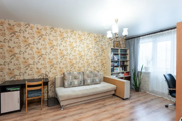 Аккуратная 2-комнатная квартира общей площадью – 44.4 м2, жилой – 32.9 м2, кухни – 5.7 м2 на 1-м высоком этаже 5-тиэтажного панельного дома 1964 года постройки в микрорайоне «Зеленый луг-2» на улице Седых, 38.