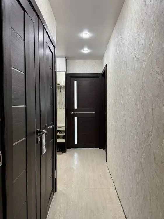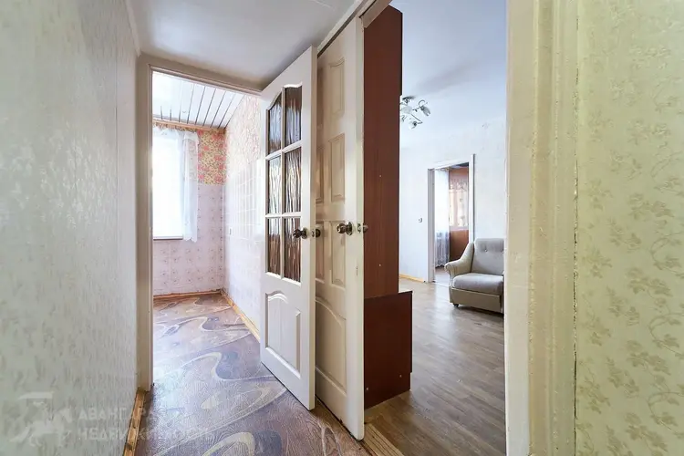 – Напольное покрытие – линолеум, стены – обои (в ванной комнате – плитка), потолок выровнен и окрашен. 2-камерные стеклопакеты ПВХ;