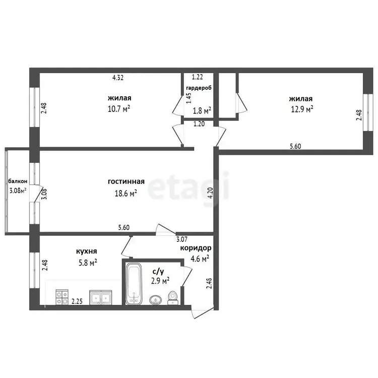 – Удачная планировка: возможна организация гардеробной в спальне;