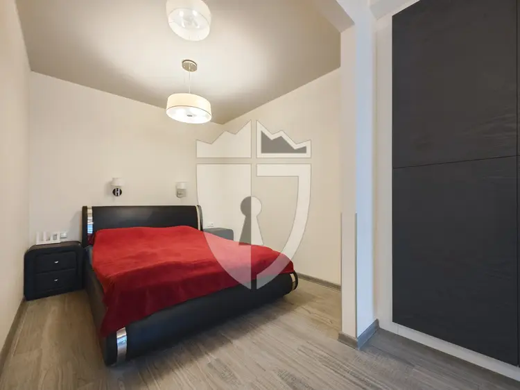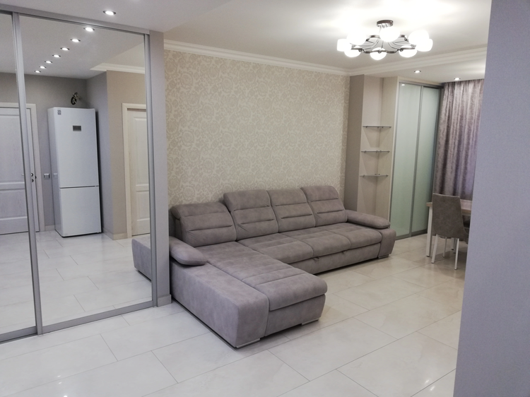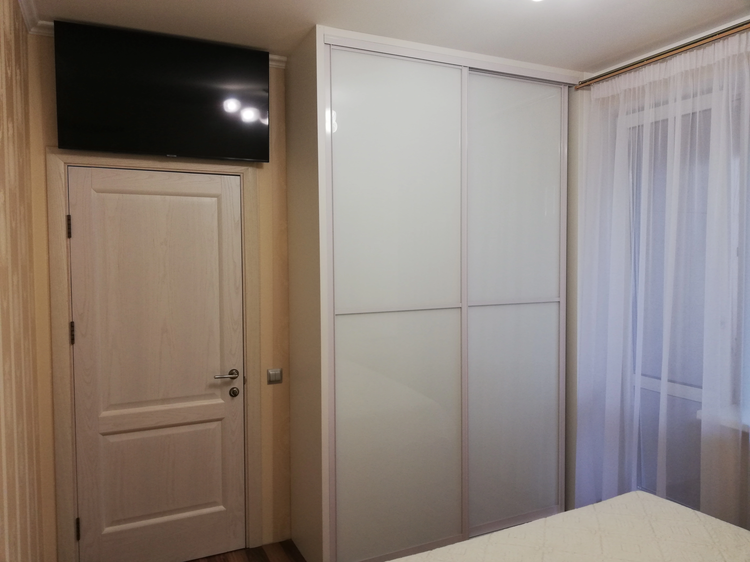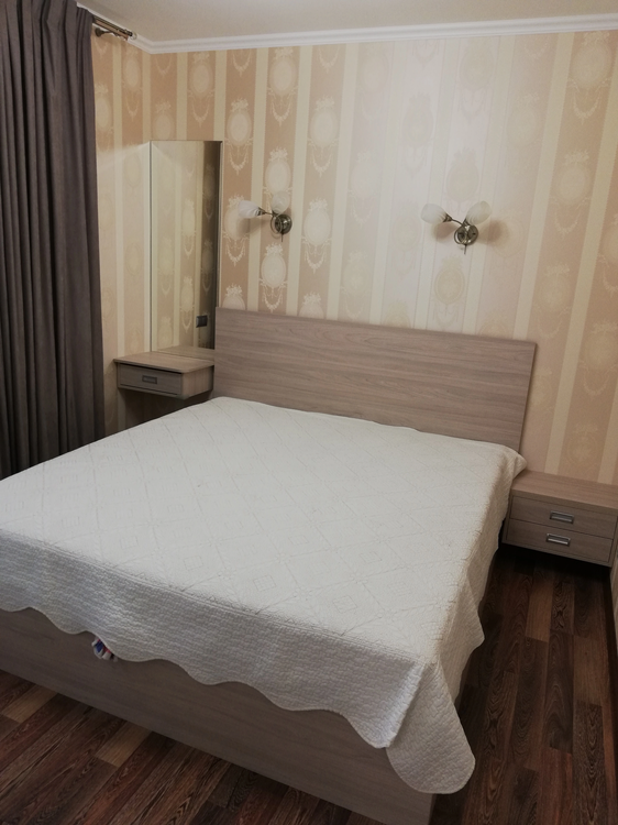 В спальне выполнена шумоизоляция стен.Кровать 180/200 с подъёмным механизмом и нишей для хранения.Диван с оттоманкой раскалывается,спальное место 2.40/2м.гардеробный шкаф с комодом для обуви, два плательных шкафа.Книжный модуль.Обеденный стол и четыре стула.