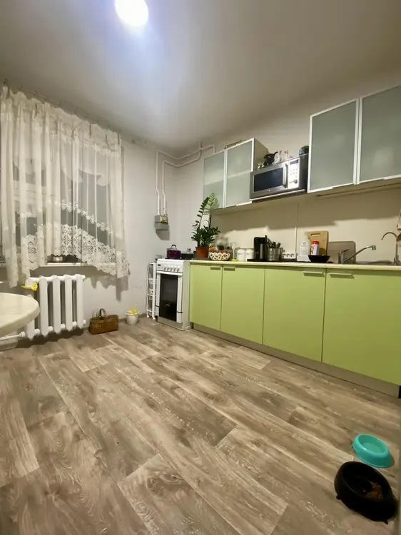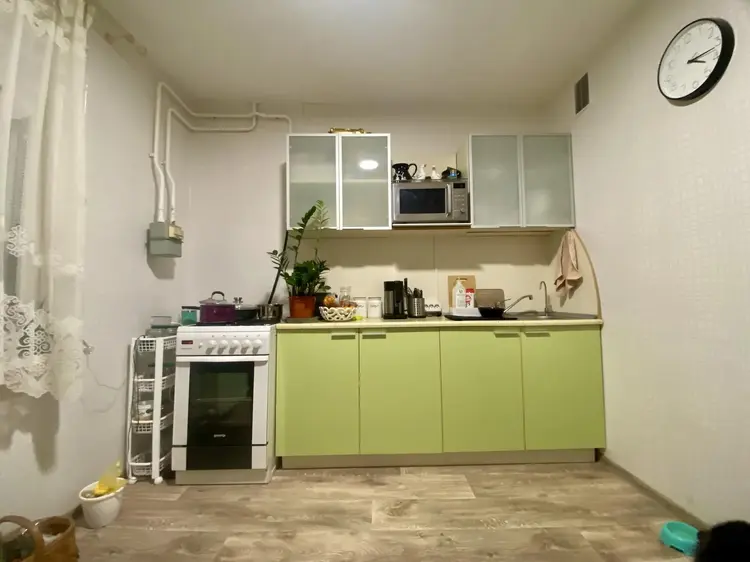 Остаётся вся техника: стиралка, плита, духовой шкаф, холодильник, микроволновка, чайник