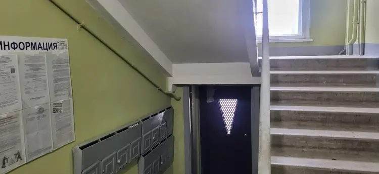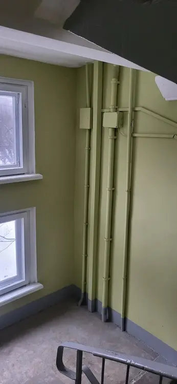 Счетчики, домофон, окна выходят во двор на разные стороны.